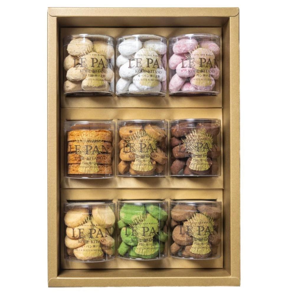開けたとたん、宝箱のようにいろいろなスイーツが出てくるイメージのコフレ カセット。ル・パン神戸北野自慢の9種のサブレをご用意しました。