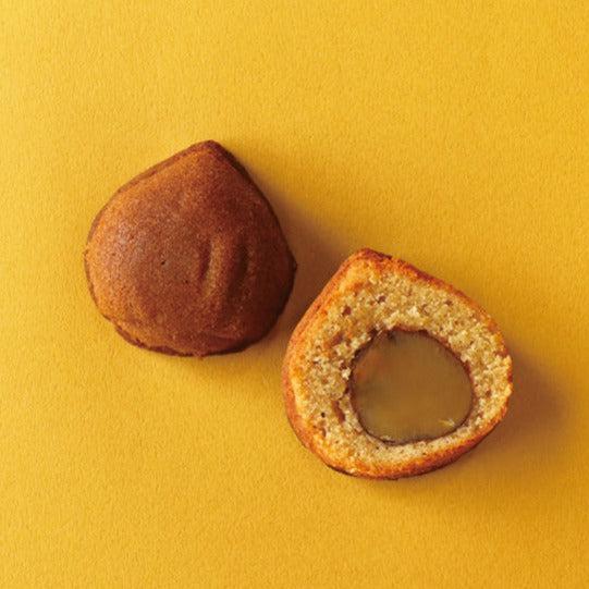 しっとりとした栗型マドレーヌの中に、丸ごと栗が入った季節限定の焼菓子です。