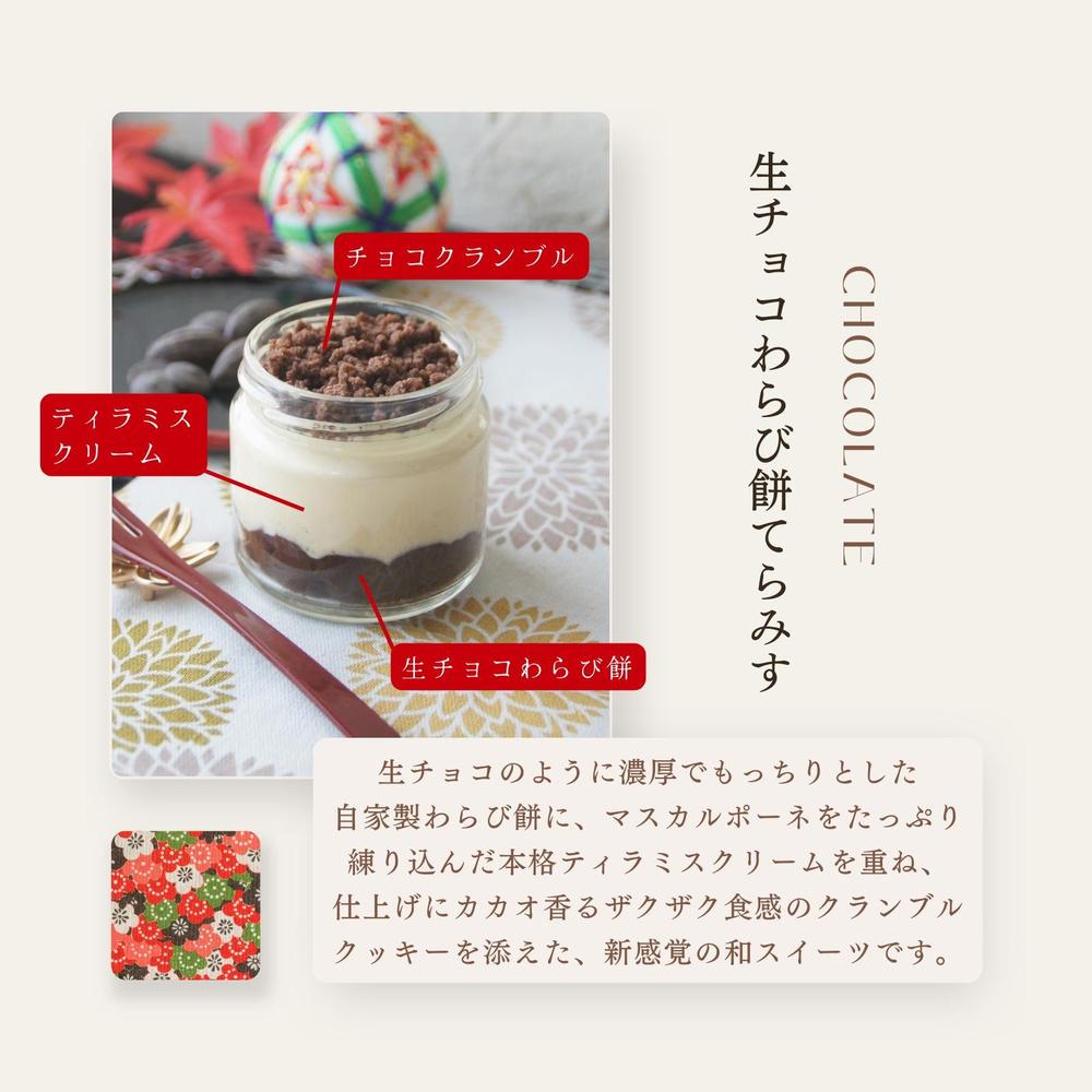 濃い味仕立て生チョコわらび餅てらみすも加え、