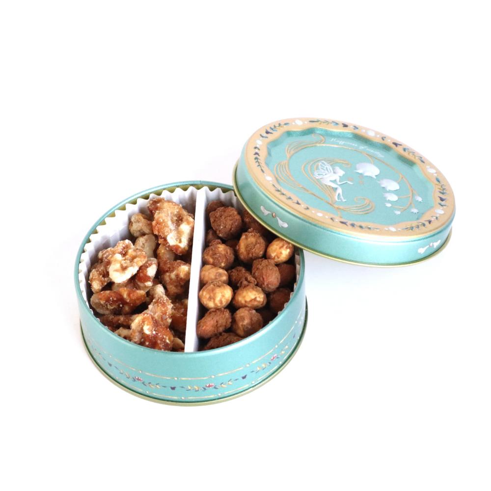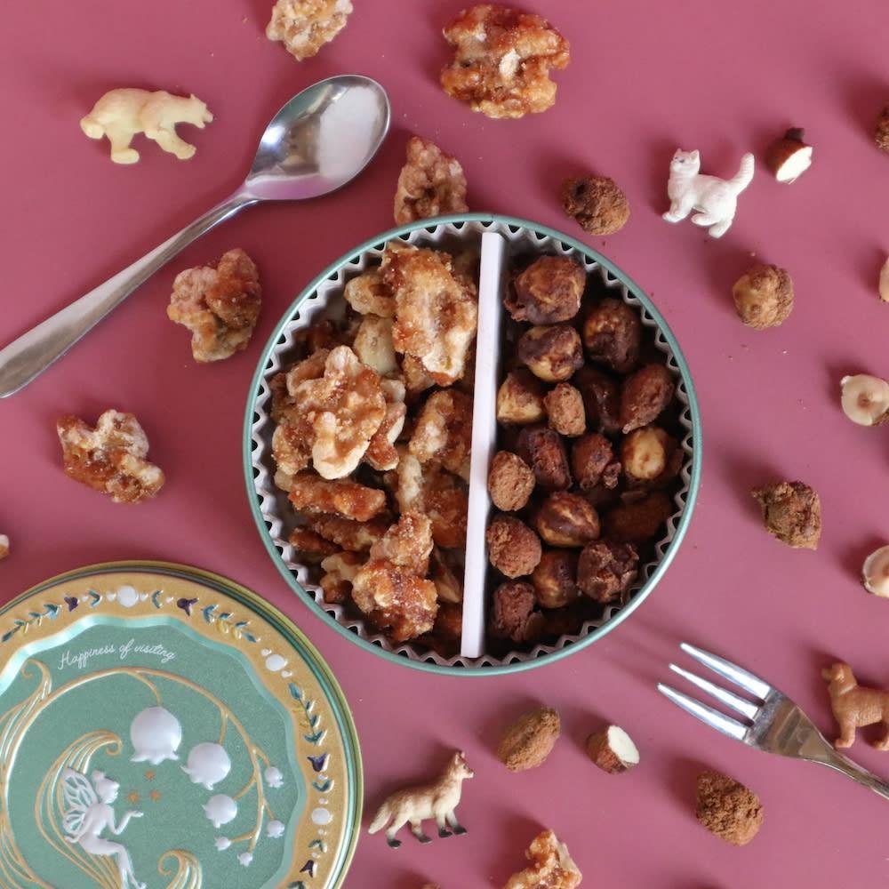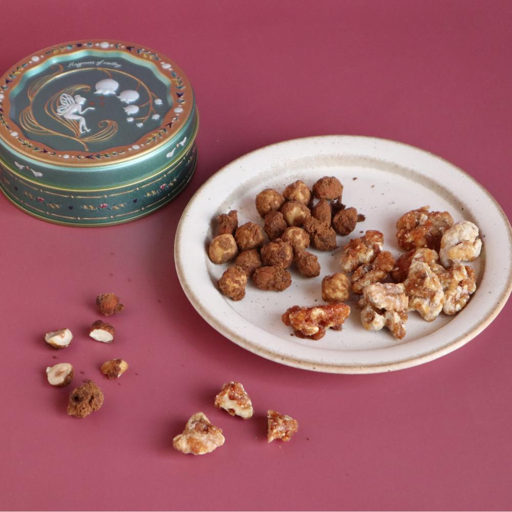 『天使のナッツ缶』には、塩キャラメルとコーヒーの2種類のナッツが入っています。