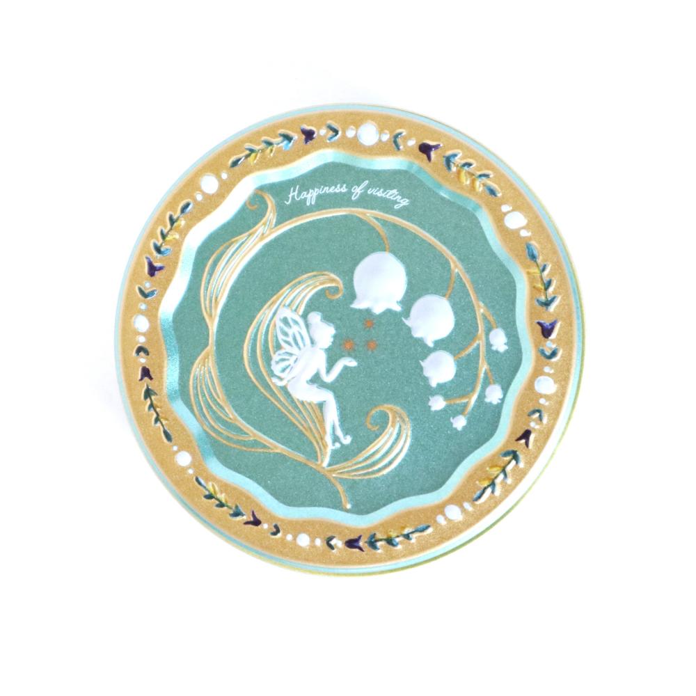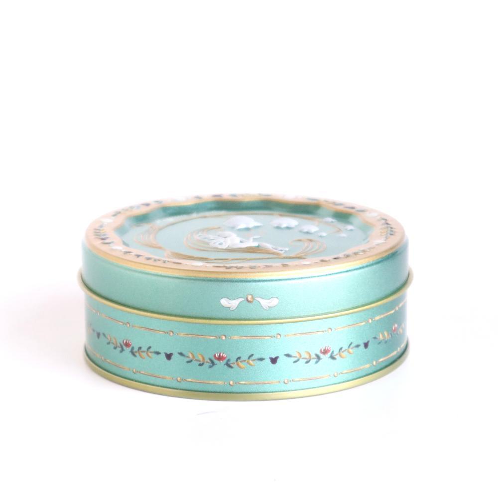 ブルーグリーン地に天使が描かれた缶に入れて、お届けいたします。