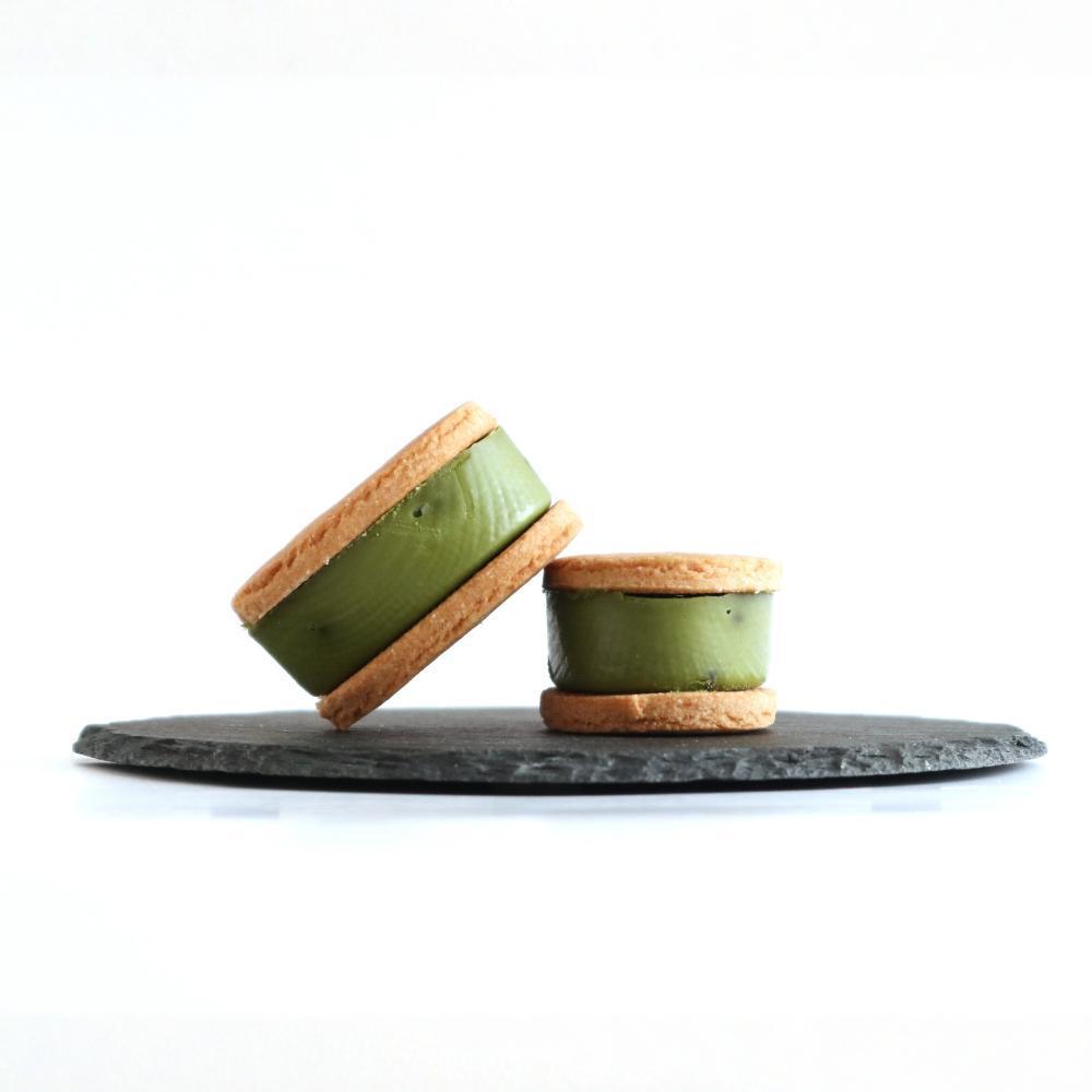 抹茶だけでも美味しいのですが、最後まで飽きずに食べていただけるよう「かのこ豆(小豆の蜜煮)」を一緒に入れ込んで、米粉サブレでサンド。