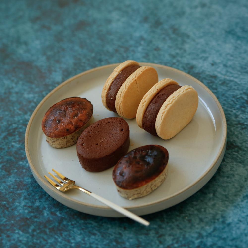 賞味期限 <カカオバスクチーズケーキ> 冷凍6ヶ月、解凍後冷蔵1週間 <チョコレート好きのためのテリーヌショコラ、チョコレート好きのためのショコラサンド> 冷凍3ヶ月、解凍後冷蔵1週間