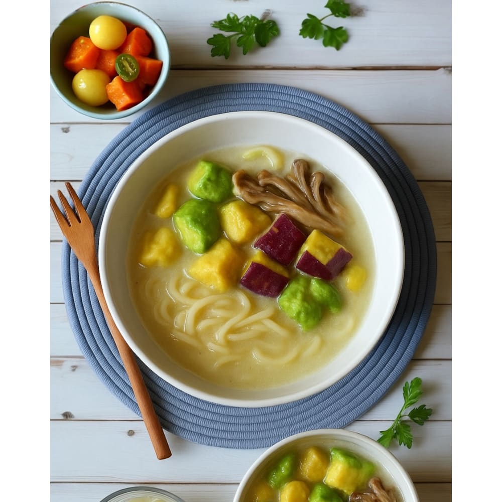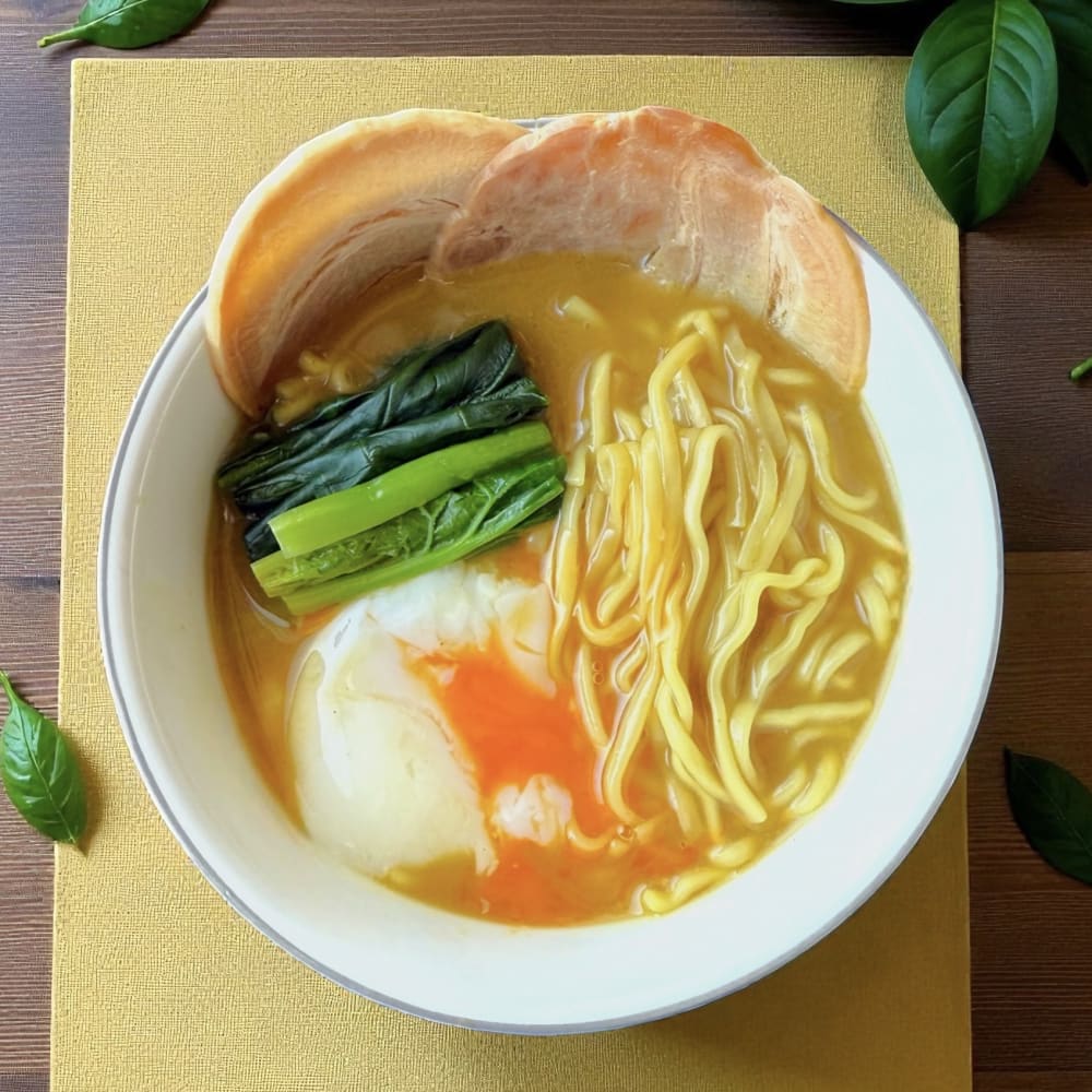 化学調味料や保存料に頼らず仕上げた、プラントベースラーメンです。
