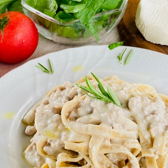 パスタは、卵入り幅広パスタに地元綾町のブランド豚肉で作ったミートソースを合わせたものとイタリア産有機ホールトマトを長時間煮込んで作ったトマトソースと九州産牛乳で作ったフレッシュチーズを合わせたもの、地元産ブレンド豚肉を使った自社製ソーセージに国産豆乳と米粉で作ったホワイトソースを合わせたものの3種類♪