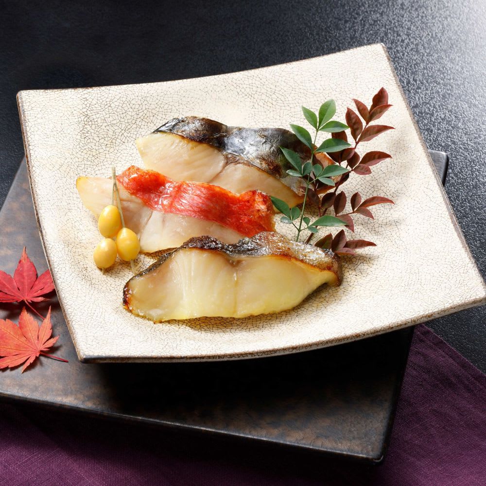 内容量 銀鱈西京漬・金目鯛西京漬・鰤西京漬・鰆西京漬・鮭(サーモントラウト)西京漬 各70g×2