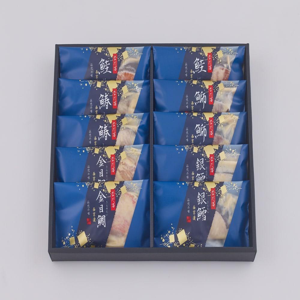 【送料込】なだ万 西京漬 SD-10C 銀鱈西京漬・金目鯛西京漬・鰤西京漬・鰆西京漬・鮭(サーモントラウト)西京漬 各2