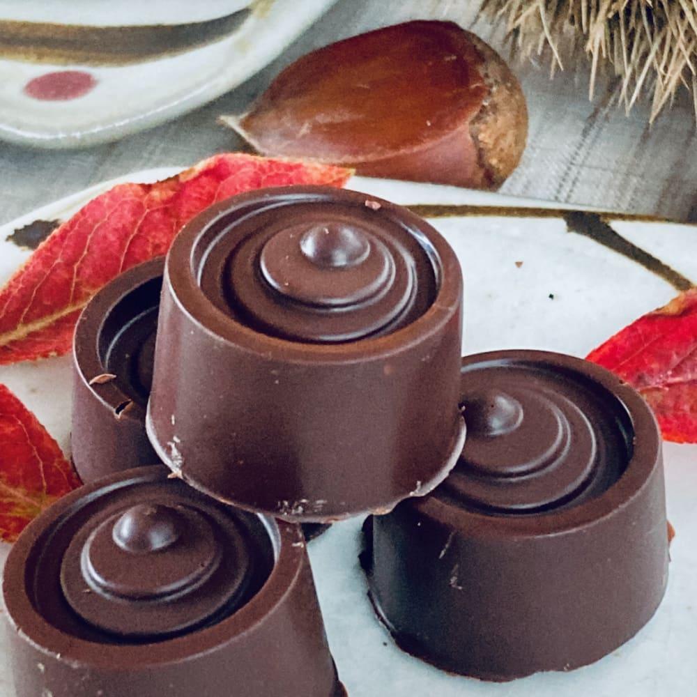 ミニチョコは、宮崎綾町産自然栽培(または有機栽培)の栗・ブルーベリーをオーガニック粗糖で煮込んで作ったジャムや、無添加アーモンド・ヘーゼルナッツ・ノンオイルクランベリーとオーガニック粗糖で作ったペースト、九州産牛乳で作ったフレッシュチーズを詰めた6種類。