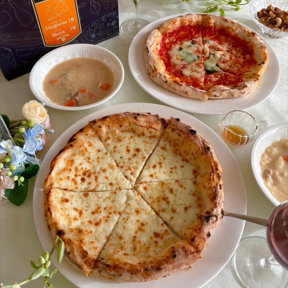 ナポリピッツアの真骨頂「マルゲリータ」と、2種のチーズの旨みとコクを味わう「ビアンカ」をセットにしました。