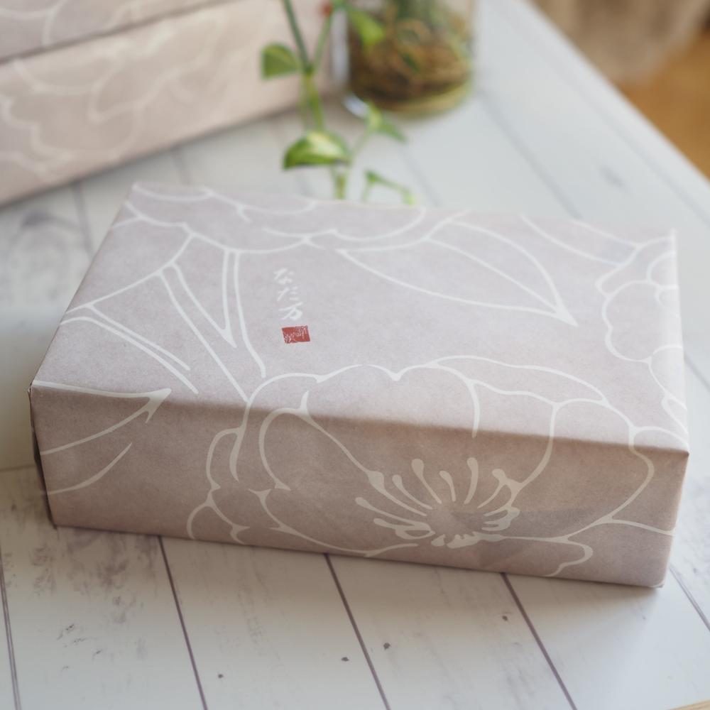 なだ万のロゴが入った、オリジナルの包装紙でお届けします。