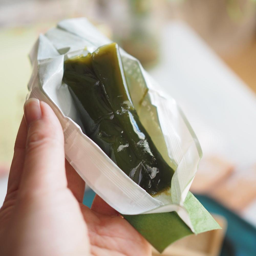 〈餡〉白いんげん豆餡(国内製造)、砂糖、水あめ、抹茶/トレハロース、調味料(アミノ酸等)、ゲル化剤(増粘多糖類)、着色料(クチナシ)