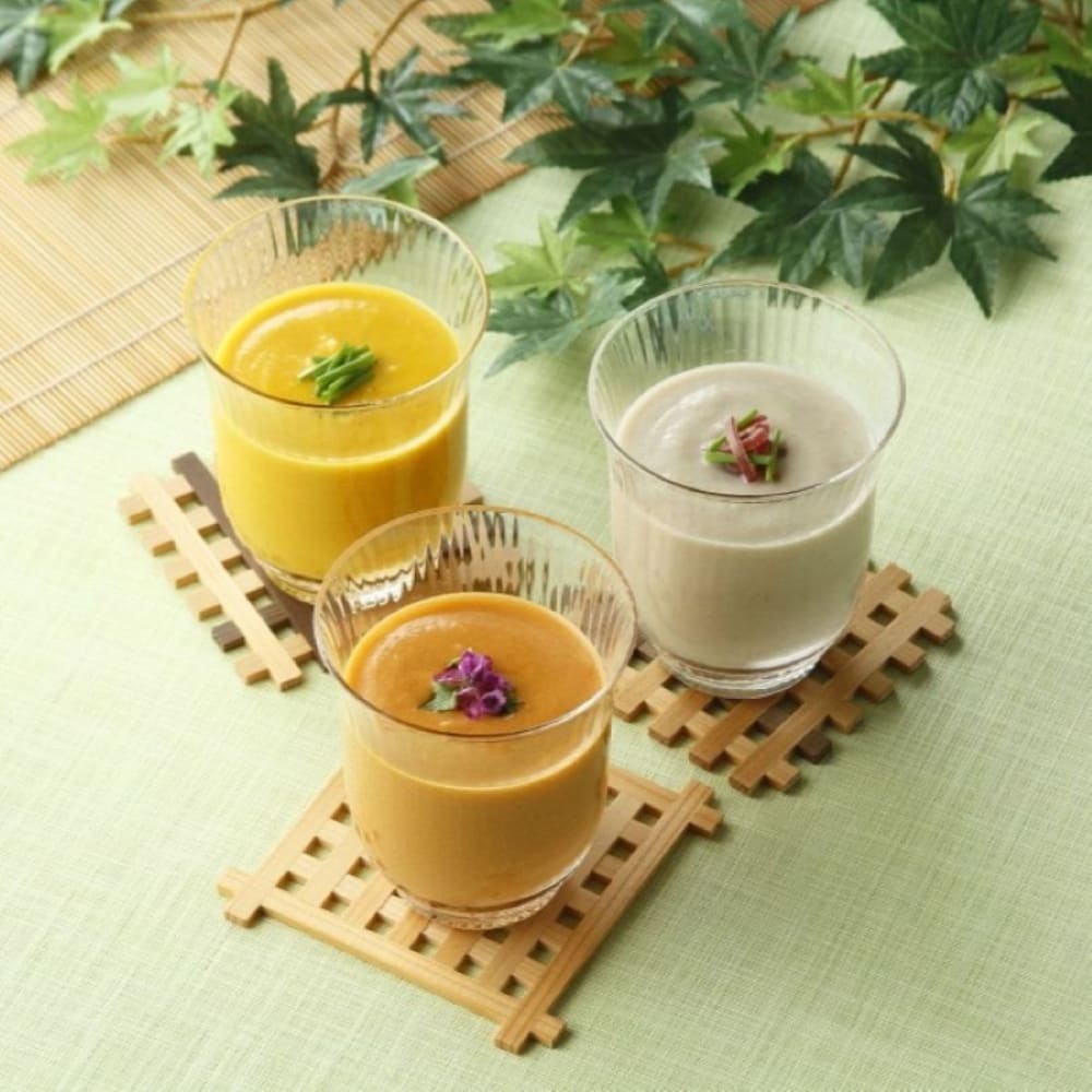 | 内容量 | 和風スープ(甘えび) 130g×1袋 和風スープ(10種の野菜) 130g×1袋 和風スープ(とうもろこし) 130g×1袋 和風スープ(渡り蟹) 130g×1袋 和風スープ(かぼちゃ) 130g×1袋 和風スープ(繊維野菜) 130g×1袋 ※この商品はレトルトパウチ食品です。(個箱入り) |
