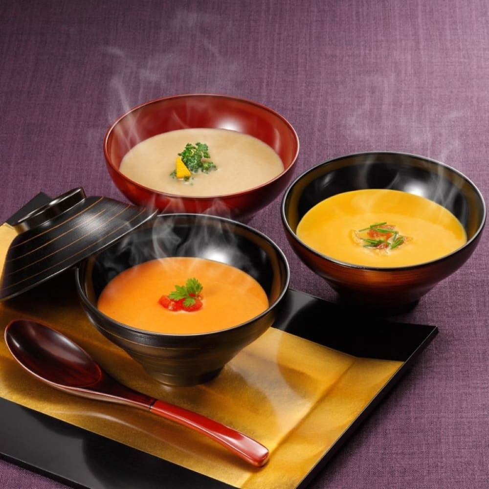 | 原材料 | 【和風スープ/甘えび】 野菜(たまねぎ、じゃがいも、にんにく)、アマエビヘッド(カナダ産又はデンマーク産)、トマト・ピューレーづけ、乳等を主要原料とする食品、清酒、生クリーム、魚醤加工品(魚醤、昆布エキス、食塩、酵母エキス)、砂糖、植物油脂、チキンブイヨン、かつお節エキス、食塩、みそ、香辛料 / 乳化剤、(一部に乳成分・えび・大豆・鶏肉を含む) 【和風スープ/10種の野菜】 野菜(にんじん(国産)、たまねぎ、さつま芋、じゃがいも、かぶ、キャベツ、ブロッコリー、レタス、セロリ)、乳等を主要原料とする食品、さつま芋ペースト、トマト・ピューレーづけ、チキンブイヨン、植物油脂、魚醤加工品(魚醤、昆布エキス、食塩、酵母エキス)、砂糖、かつお節エキス、みそ、食塩 / 乳化剤、(一部に乳成分・大豆・鶏肉を含む) 【和風スープ/とうもろこし】 野菜(スイートコーン(アメリカ産)、たまねぎ、じゃがいも)、コーンピューレ、乳等を主要原料とする食品、魚醤加工品(魚醤、昆布エキス、食塩、酵母エキス)、砂糖、植物油脂、食塩、チキンブイヨン、かつお節エキス、みそ / 乳化剤、(一部に乳成分・大豆・鶏肉を含む) 【和風スープ/渡り蟹】 野菜(たまねぎ、じゃがいも、にんじん、セロリ、ポロネギ、にんにく)、乳等を主要原料とする食品(国内製造)、ワタリガニ、トマト・ピューレーづけ、トマトペースト、植物油脂(オリーブ油、大豆油)、ルー(小麦粉、植物油脂)、かつお節エキス、ブランデー、食塩、魚醤加工品(魚醤、昆布エキス、食塩、酵母エキス)、カニエキス、みそ、香辛料/乳化剤、(一部に乳成分・小麦・かに・大豆を含む) 【和風スープ/かぼちゃ】 野菜(かぼちゃ(国産)、たまねぎ、じゃがいも、にんじん、セロリ)、乳等を主要原料とする食品、生クリーム、バター、砂糖、魚醤加工品(魚醤、昆布エキス、食塩、酵母エキス)、チキンブイヨン、食塩、かつお節エキス、みそ、香辛料/乳化剤、(一部に乳成分・大豆・鶏肉を含む) 【和風スープ/繊維野菜】 野菜(ごぼう、じゃがいも、たまねぎ)、乳等を主要原料とする食品(国内製造)、生クリーム、魚醤加工品(魚醤、昆布エキス、食塩、酵母エキス)、バター、チキンブイヨン、ルー(小麦粉、植物油脂)、かつお節エキス、植物油脂、みそ、食塩、香辛料/乳化剤、(一部に乳成分・小麦・大豆・鶏肉を含む) |